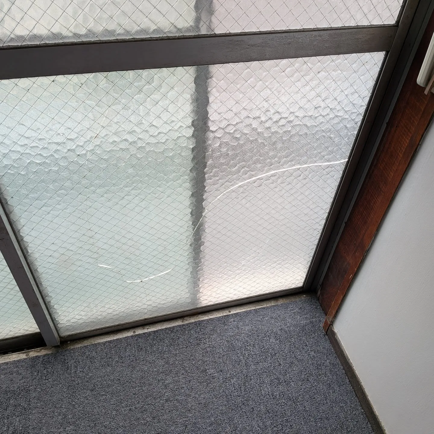 建築基準法で地域によっては設置義務のある網入りガラスですが、使用年数なよっては 熱割れ と言って自然に割れてしまいます。これは内部の金属ワイヤーと硝子の熱膨張率の違いが原因でどうしても起きてしまう自然消耗の類なので賃貸住宅の場合入居者負担にはなりません。